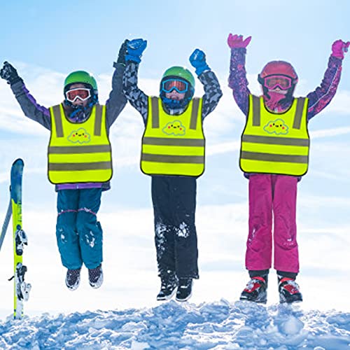 AMOBON 2 Pezzi Gilet Antinfortunistici Bambini, Gilet Alta Visibilità Catarifrangente di Sicurezza per Auto e Biciclette, Giubbotti Protettivi per Ragazze Ragazzi 3-12 Anni (Giallo)