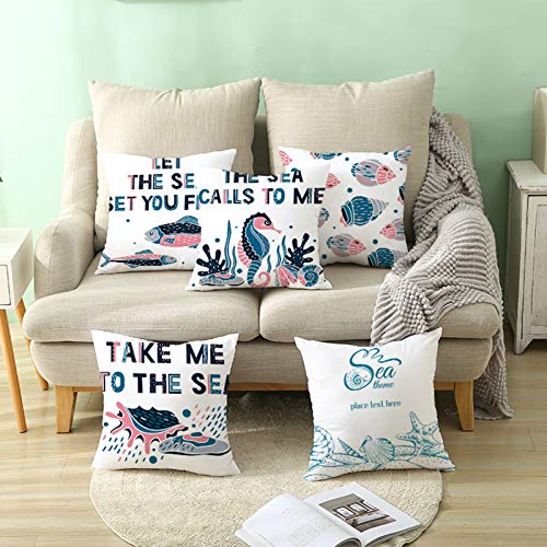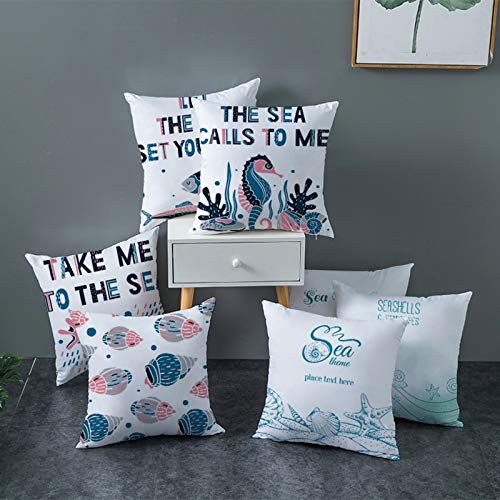 Amody Federe Cuscini Divano Farmhouse, Copricuscini 45x45cm Stella Marina della Conchiglia Uccello del Faro Cuscino copricuscini Divano Caso Federa per Cuscino Bianco Blu Stile 36
