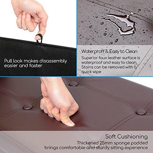Amoiu 76 x 38 x 38cm Pouf Pieghevole Stoccaggio Ottomano Poggiapiedi Panca Sedile Sgabello Tavolino Cassapanca di 80L con Coperchio, Ecopelle Marrone