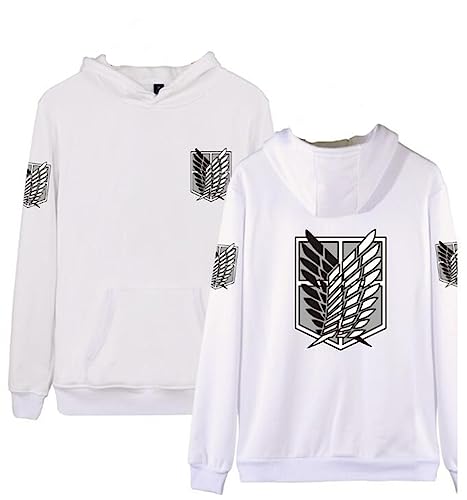 AMOMA Unisex Uomo Donna Anime Attack On Titan Felpa con Cappuccio Animation Cosplay Felpa Hoodie Pullover(XS,BlackLogo-White)