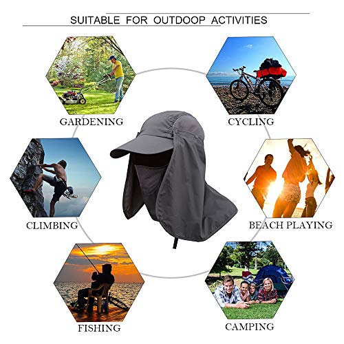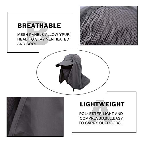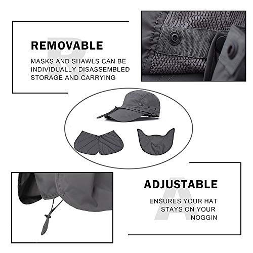 AMOMYDOG Cappello Pescatore, Protezione UV UPF 50+ Cappello Sole con Staccabile Patta del Collo e Copertura del Viso, Cappello Estivo Berretto Unisex per Escursionismo Giardinaggio (Grigio Scuro)