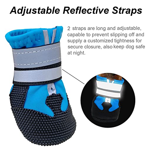 AMOMYDOG Scarpe per Cani, Set di 4 Stivali per Cani Impermeabile, Scarpe Cane con Cinturini Riflettenti e Suola Antiscivolo per Protezione le Zampe per Cani di Taglia Piccola Media Grande (S, Blu)