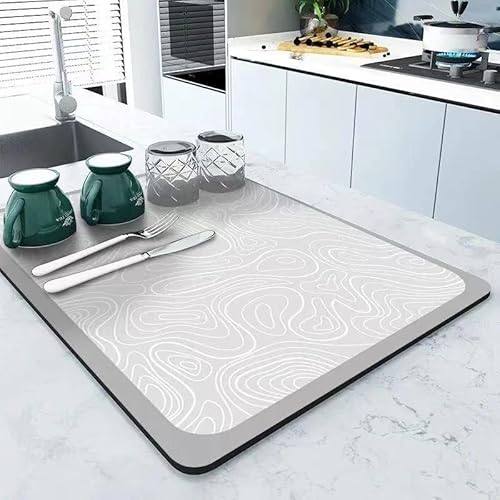 AMOMYDOG Tappetino Scolapiatti, Super Assorbente Tappetini Lavello Cucina, Scolapiatti da Lavello Asciugatura Rapida, Sgocciolatoio per Lavello Antiscivolo per Bancone Cucina 40 x 50cm (Grigio Chiaro)