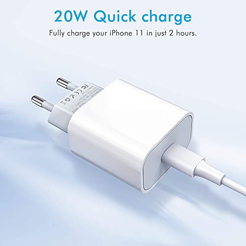 Amoner C-Lightning 20 W + 1 M Cavo Telefono Caricatore C, Compatibile con iPhone 12/12 Pro/12 MINI/11/X/XS/XR/8/8 Plus/7/7 Plus/6/6s/5/SE/iPad/Pro/Mini