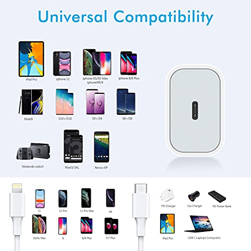 Caricabatterie Amoner da 20 W e cavo di ricarica ad alta velocità: ricarica rapidamente il tuo iPhone XS / XS Max / XR/12, Google Pixel 2/2 XL o qualsiasi altro dispositivo compatibile con USB C Ger che supporta l'alimentazione USB.