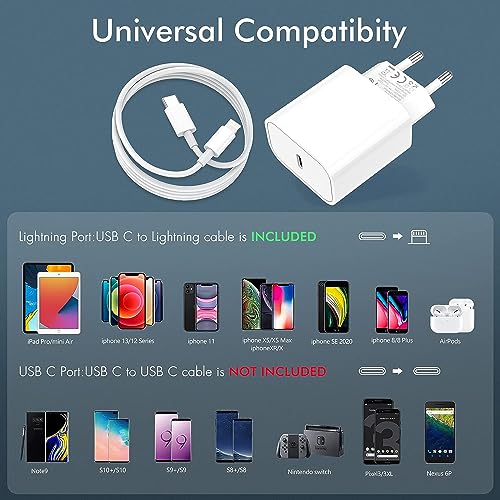 Amoner Caricatore USB C 20W Quick Veloce Caricatore da Parete Caricabatterie con Cavo C-L 1m Compatibile con iPhone13, 13pro, 13 Pro Max, 12, 12mini, 12 Pro, 12 Pro Max, 11, 11 Pro Max, SE, XR
