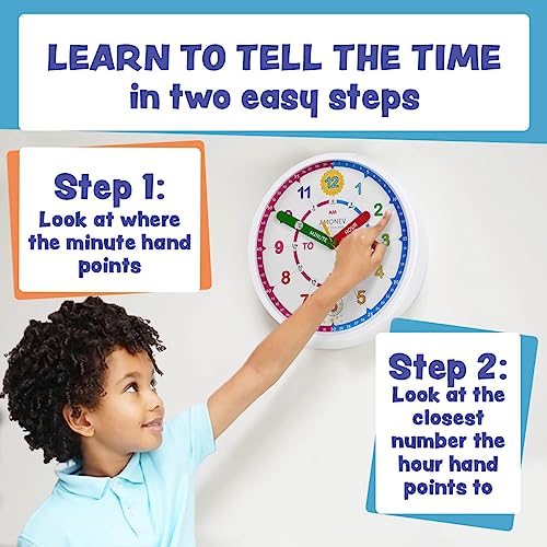 Amonev Orologio da parete V3, insegnare ai bambini a leggere istantaneamente e dire l'ora con questo orologio movimento silenzioso (0714573399354)