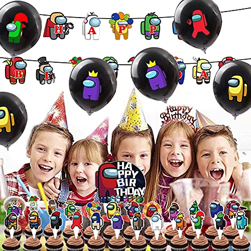 Among-Us Fornitura di Festa di Compleanno, Hilloly Striscioni per Feste di Compleanno Set, Feste di Compleanno a Tema Among Us Bambini Decorazione per Feste, Topper per Cupcake (42Pcs)