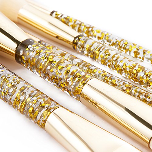 Amoore 5 Pezzi Pennelli Trucco Set Maniglia di Legno con Pelle Sintetica Borsa da viaggio Della Spazzola Cosmetici Corredo di Attrezzi per Blending Blush Kit Ombretto Pennello