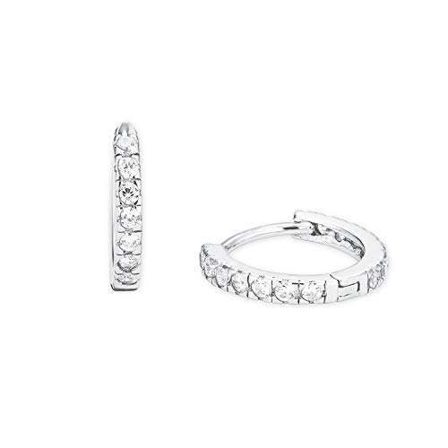 Amor Creoles Gioielli per orecchie da donna in argento 925, con zirconi, 1,2 cm, argento, in confezione regalo, 2017285
