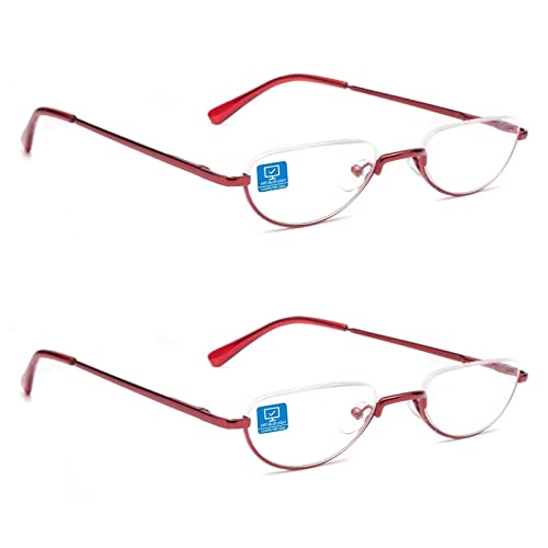Amorays 2 Pacco Occhiali da Lettura Cornice a Mezza Luna Occhiali Presbiopia con Anti Luce Blu con Cerniera a Molla per Donna Uomo 9012(Rosso,+1.50