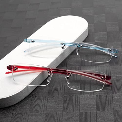 Amorays 2 Pacco Occhiali da Lettura Uomo Donna Anti Luce Blu Occhiali da Lettura Anti Affaticamento Degli Occhi Antiriflesso Leggeri e Flessibili L620(Blu+Rosso,350)