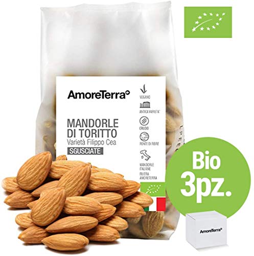 AmoreTerra Mandorle BIO di Toritto, 250g, esclusive, italiane, gustose mandorle biologiche, coltivate sull'altopiano delle Murge, antica varietà “Filippo Cea” (3 Pz.)