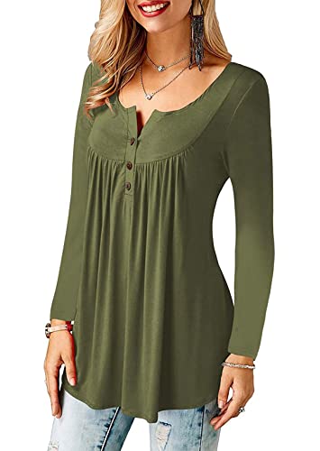 Amoretu Verde Camicia Donna Tunica Top Ruffle Manica Lunga Casual Camicetta M