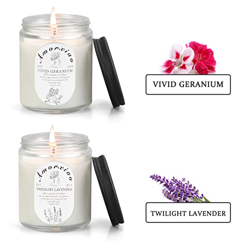 Amorxiao Candele Profumate Set Regalo 2 Pezzi, Cera di Soia Naturale Geranio Lavanda Aromaterapia Candele per Donna, Alleviare Lo Stress e Casa Decorazione, per Anniversario Compleanno Bagno Yoga