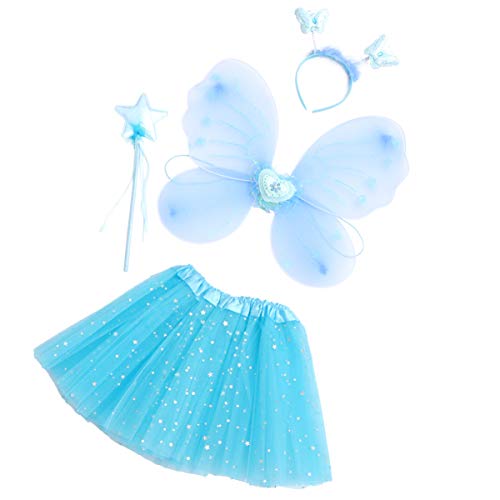 Amosfun Blue Fairy Princess Dress Up Costume Ali Bacchetta Tutu Gonna Fascia Ali Fascia Farfalla Outfit Forniture per feste di Carnevale Cosplay Bomboniere