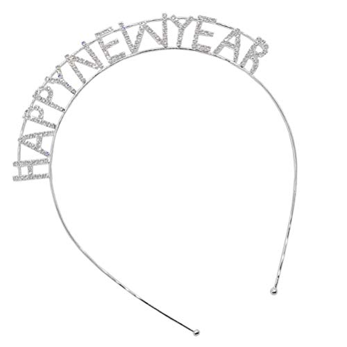 Amosfun - Cerchietto per capelli con scritta "Happy New Year", con strass, per capelli/feste di Capodanno, feste