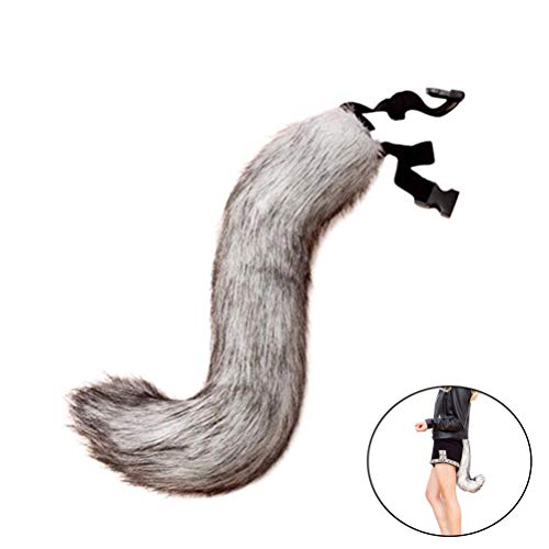 Amosfun Coda di Volpe Vera soffice Coda di Pelliccia Cinturino Regolabile Pelliccia di Volpe Costume di Volpe per Cosplay Puntelli Costume di Festa di Natale (Grigio)
