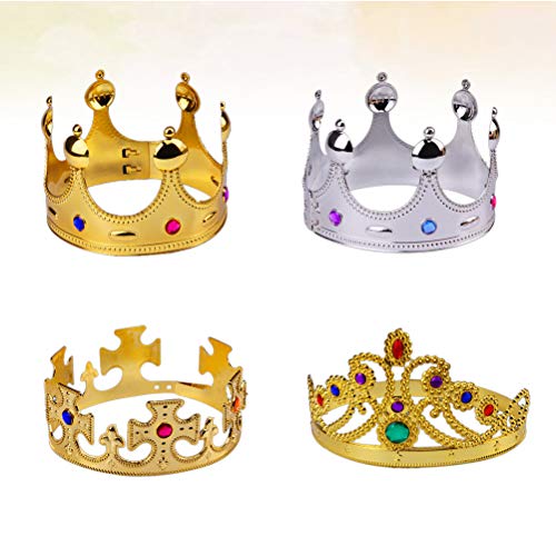 Amosfun Corona placcata in plastica Corona Decorata per Feste per Compleanno Halloween (1 Pezzo Corona Croce Dorata, 1 Pezzo Corona Regina d'oro, 1 Pezzo Corona re d'oro, 1 Pezzo Corona re d'Argento)