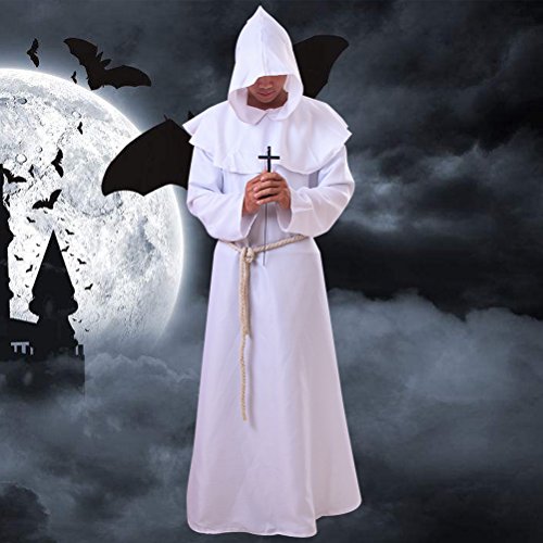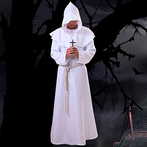 Amosfun - Costume da monaco medievale per Halloween, per feste e cosplay bianco M