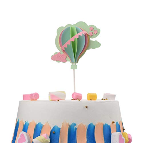 Amosfun - Decorazione per torta con mongolfiere, 3D, decorazione per torte (blu, rosa, giallo, verde)