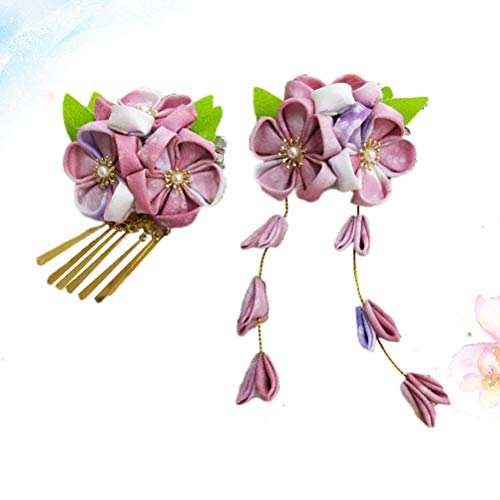 Amosfun, Fascia per Capelli con Fiori Giapponesi, 2 Pezzi, Accessorio per Capelli per Donne e Ragazze, Rosa Chiaro, Taglia 1