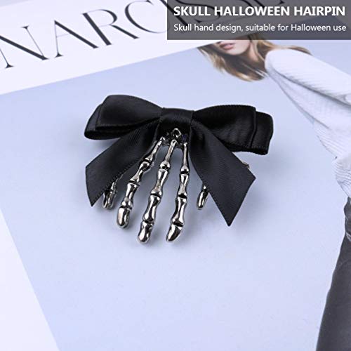 Amosfun 2 Pz Halloween Scheletro Artigli Fermagli per Carino Teschio Mano Fermaglio per con Bowknot Halloween Artiglio Tornante per Ragazze Halloween Party Cosplay