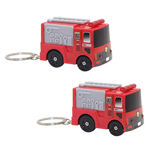 Amosfun 2 Pezzi Giocattolo Camion dei Pompieri con Luci a LED Sirena Suoni Camion dei Pompieri Veicoli da Costruzione Giocattoli Portachiavi Portachiavi Portachiavi per Bambini