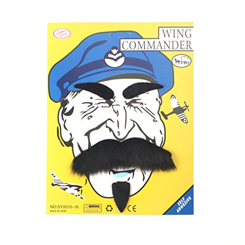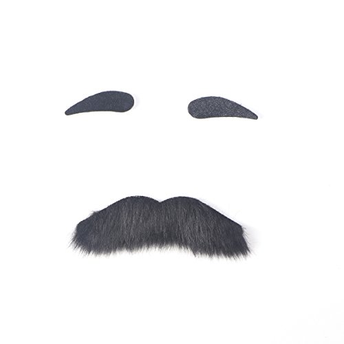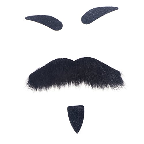 Amosfun, kit di tre pezzi per Halloween, autoadesivo, per sopracciglia, baffi, barba, capelli, cosplay, travestimenti, feste in maschera (nero, stile B)