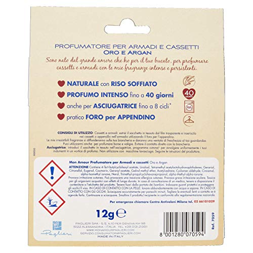 Mon Amour - Profumatore per Armadi e Cassetti, Oro Argan, Extra Profumo - 1 Bustina x 20 gr