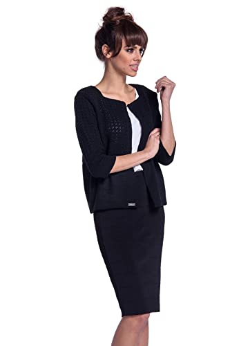 Amourelle Cardigan Blazer - Cardigan da donna con maniche a 3/4, Nero, S