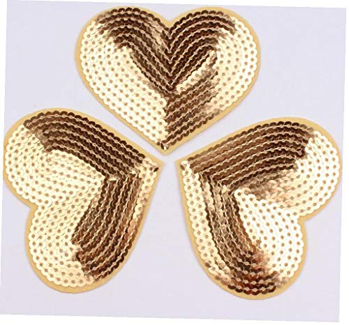 AMOYER 10pcs Paillettes Cuore Patch Iron on Cuce su Cappelli Scarpe Pantaloni Jeans Cappotti Adesivi in ??Tessuto Applique Ricamo Patch (Giallo)