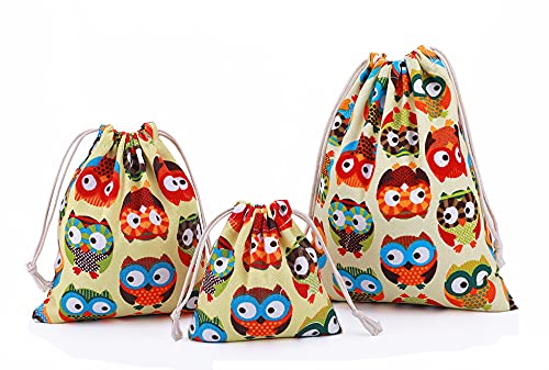 Amoyie - Set di 3 borse con coulisse, per bambini, accessorio per la casa e da viaggio, borsa media (25 x 30 cm) + piccola (19 x 23 cm) + mini (15 x 16)