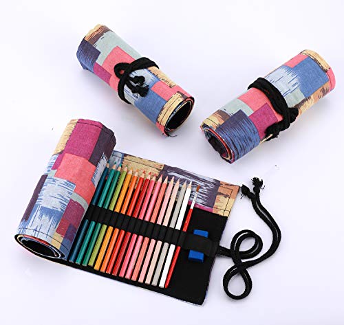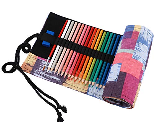 Amoyie Sacchetto della Matita Rotolo Astuccio per 48 Matite Colorate Tela Organizer Borsa (no inclusa matite)