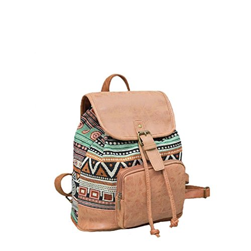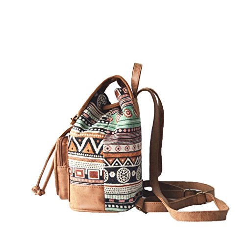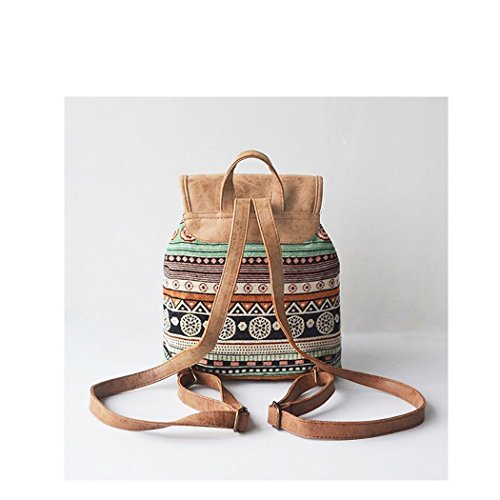 Amoyie Zaini Casual in Cotone e Pelle, Piccola Borse a zainetto per Scuola Viaggi, Vintage Zaino Zainetto Ragazza Donna, strisce verdi