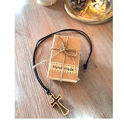 Ampals,collana marrone con vero legno d'ulivo fatta a mano a Gerusalemme, scatola di corda di iuta Kraft, regalo di Natale, battesimo, festa cristiana, compleanno, protezione dell'auto,casa, benessere