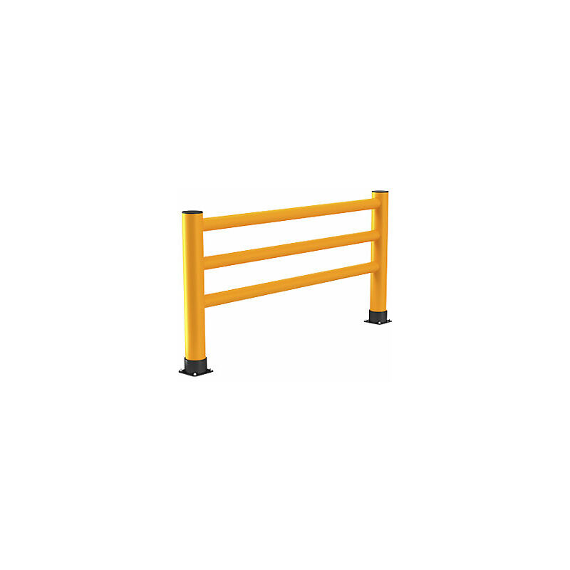 Corrimano, altezza 1,1 m, lunghezza 4 m, giallo traffico. Fornitura = in parte smontato. Tipo di fissaggio = ancoraggio al suolo. Lunghezza totale = 4 m. Altezza totale = 1100 mm. Colore = giallo traffico. Lunghezza piastra di base = 180 mm. Larghezza piastra di base = 180 mm. Peso = 107.64 kg. Diametro tubo = 140 mm. Altezza piastra di base = 8 mm. Luogo d'impiego = per interni ed esterni. Corrimano flessibile con assorbimento di energia per la delimitazione visiva dei percorsi di transito. Assorbimento e dissipazione dell'energia d'impatto. Ideali per delimitare la circolazione in zone a rischio di impatto. Questa barriera flessibile con assorbimento di energia viene utilizzata per la delimitazione visiva dei percorsi di transito. Fornisce una protezione fisica ai pedoni e ai conducenti dei veicoli in caso di incidente, assorbendo e dissipando l'energia d'impatto. Ideale per delimitare la circolazione in zone a rischio di impatto. Il corrimano è compatibile con il sistema Swing