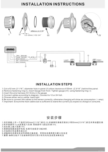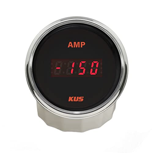 Kus - Amperometro digitale impermeabile retroilluminato a 150 A con sensore di corrente da 12/24 V, 52 mm