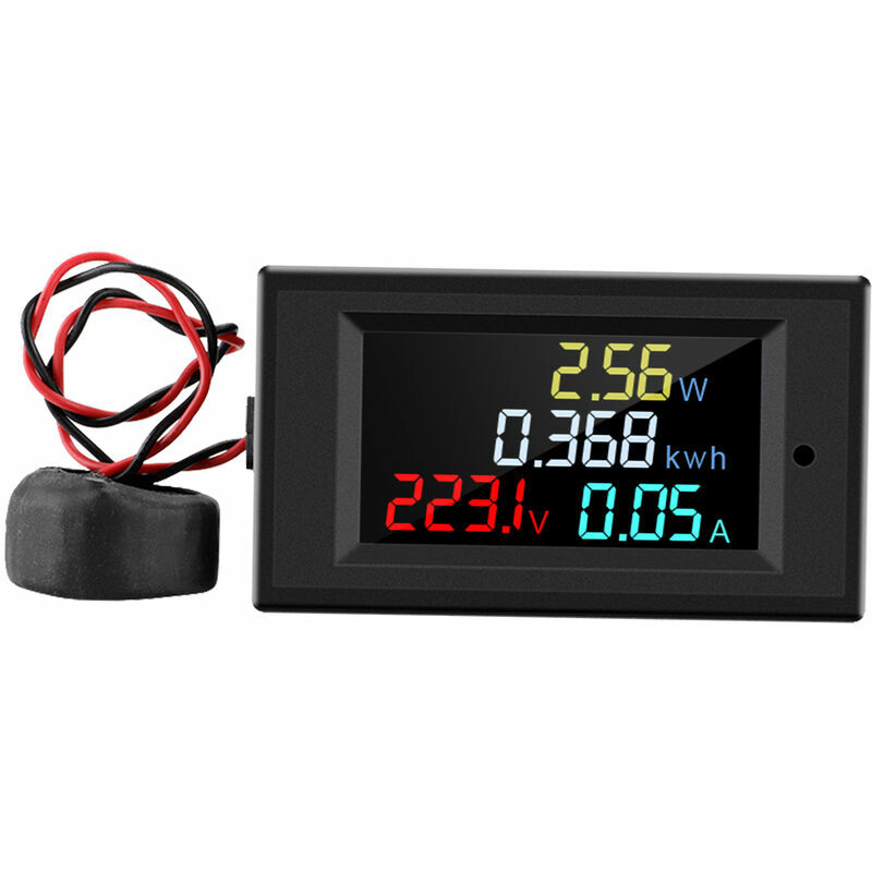 Il misuratore È durevole, comodo e preciso (ma non può essere calibrato), ha un display LCD Schermo a colori molto bello dove mostra chiaramente i valori elettrici, permette di misurare e visualizzare contemporaneamente tensione AC, corrente AC, potenza attiva ed energia elettrica. Caratteristiche: Ampio display LCD a colori: tensione, corrente, potenza attiva e nel frattempo i valori della quantità elettrica possono essere visualizzati con colori vivaci. Tutti i dati saranno chiari a colpo d'occhio Memorizzazione automatica dei dati: quando l'alimentazione viene interrotta, il dispositivo salva automaticamente il valore di potenza corrente, legge il valore e continua ad accumularsi quando lo strumento viene nuovamente elettrificato. Corrente trasformatore: Fornito con TA da 0-100A, il misuratore consente una facile e buona misurazione del consumo di corrente, oltre al dispositivo elettronico stesso. Basta far passare il filo attraverso il foro del trasformatore Funzione di reset