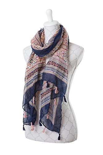 Ampio Foulard Sciarpa, disegno astratto, bordi orlati, Blu, Rosso, Giallo, Ecru