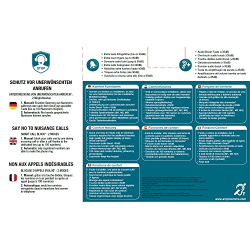 Amplicomms BigTel 1502 DECT-Portatile aggiuntivo Auricolare, per Hörgeräte Compatibile, Wahlwiederholung Le
