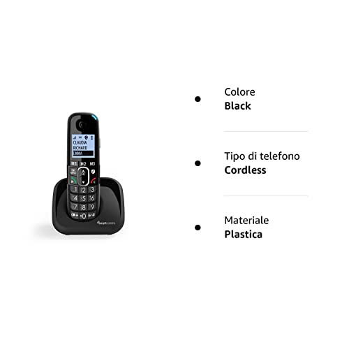 Amplicomms per Delta Telefono Cordless Amplificato per Anziani Suoneria Forte 90 Db, Volume Alto 35 Db, Pulsante Boost, Vivavoce, Call Blocker programmabile per blocco chiamate indesiderate
