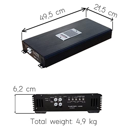 Dimensioni dell'amplificatore: 48,5 x 21,5 x 6,2 cm;