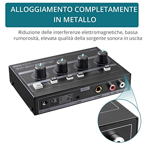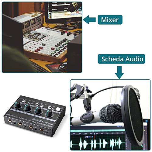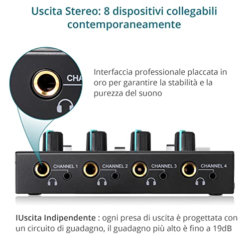 Amplificatore per Cuffie, YGiTK Amplificatore per Cuffie Professionale a 4 Canali Amplificatore Audio Mono/Stereo