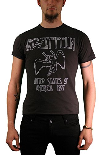 Amplified LED Zeppelin-Tour 77 T-Shirt, Grigio (Carbone), M Uomo