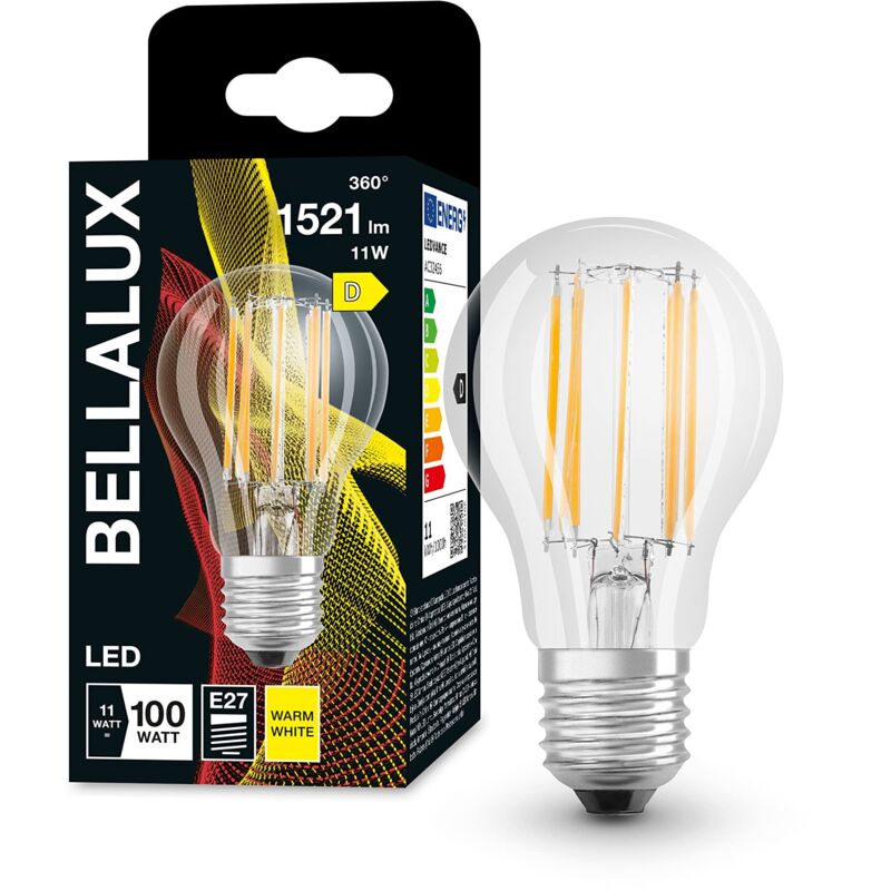 Ampoule led verre transparent standard E27, 11W, blanc chaud. Bellalux