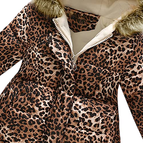 Amropi Cappotto Bambini Ragazze Floreale Giacca con Cappuccio Inverno Giacche Cappotti Leopardo, 4-5 Anni
