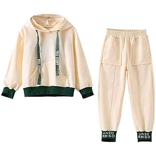 Amropi Jogging Tuta Ragazze Felpa con Cappuccio + Pantaloni 2 PCS Set Completo Beige,9-10 Anni
