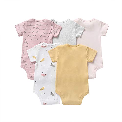 Amropi 5 Pezzi Body Bambino a Manica Corta Pagliaccetto Pigiami di Cotone Neonato Tutina Set Giallo/Bianco/Rosa, 12-18 Mesi