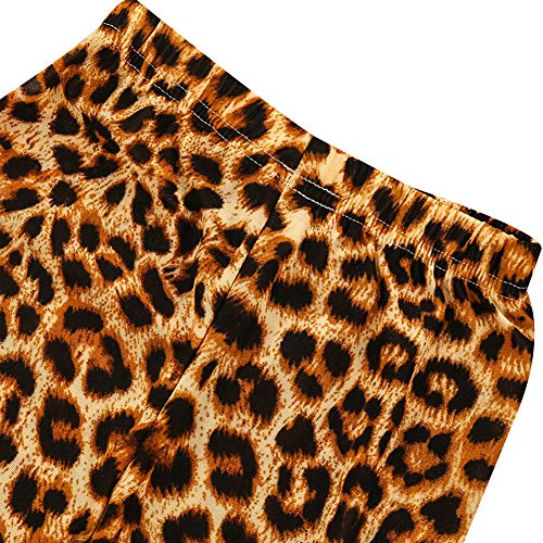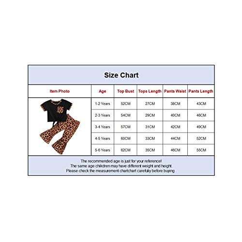 Amropi Ragazze Leopardata Maglietta con Maniche Corte e Campana Pantaloni 2 PCS Set Completo Nero, 1-2 Anni